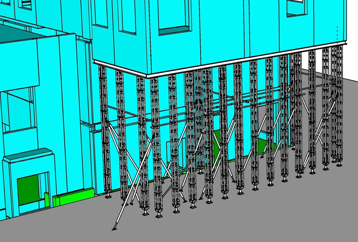 - I stedet for en montagetid på to til tre uger kunne MEGA-støtterne opstilles på én uge, og også afmonteringen var meget hurtigere. Endnu en væsentlig fordel på den snævre byggeplads var, at MEGA-støtterne har et meget lille fodaftryk, hvor en gitterløsning typisk går 2-3 meter udover bygningen, siger Carsten Ipsen.