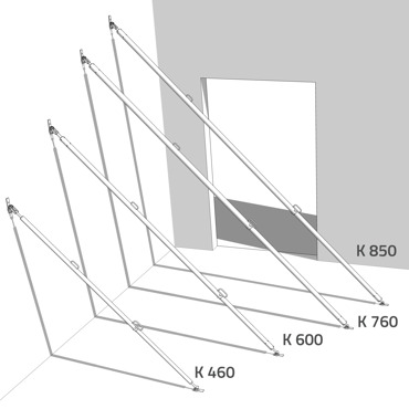 Elementstøtterne er med deres lave egenvægt og skjulte gevind lette at håndtere, fastgøre og indstille i længder fra 0,85 m op til 20 m. Klikbeslaget, der følger med de lidt større typer, kan monteres på betonelementet på bilen og er således allerede klar til at modtage elementstøtten, når elementet hejses på plads.