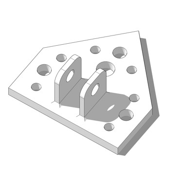 Klikbeslag til træelementer til hurtig montering af elementstøtter. Monteres direkte på træelementet på lastbilen. Udstyret med fire Ø14-huller til skruemontering og Ø21-hul til M20-bolt. Kan sikres med 3,5 mm fjedersplit for ekstra sikkerhed.