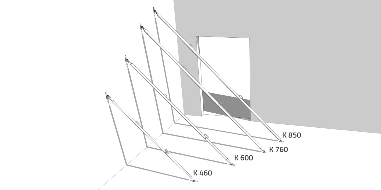 Elementstøtter K er varmforzinkede teleskoperbare elementstøtter med lille egenvægt. De har i toppen en gaffelende med dorn, der, under fastgørelsen på elementet, skydes ind i det selvlåsende Klikbeslag 1H.