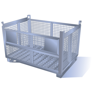 Gitterboksen er praktisk til levering og opbevaring af små og store emner. Lågen kan klappes ned, så adgangen til indholdet bliver nem, selvom gitterboksen kun er delvist fyldt.