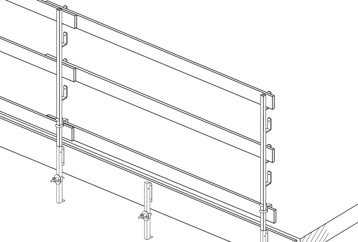 Gelænderstolpen er rygraden i PROTECTO-systemet. Den bruges som holder for rækværk af brædder, rør eller PROTECTO-hegn. Afstanden mellem gelænderstolperne (fra 2,0 - 2,4 m) afhænger af valget af rækværkstype. Når gelænderstolpen stikkes ned i de forskellige beslag, sikres den automatisk mod løft med den indbyggede lås. Gelænderstolpen er varmforzinket.