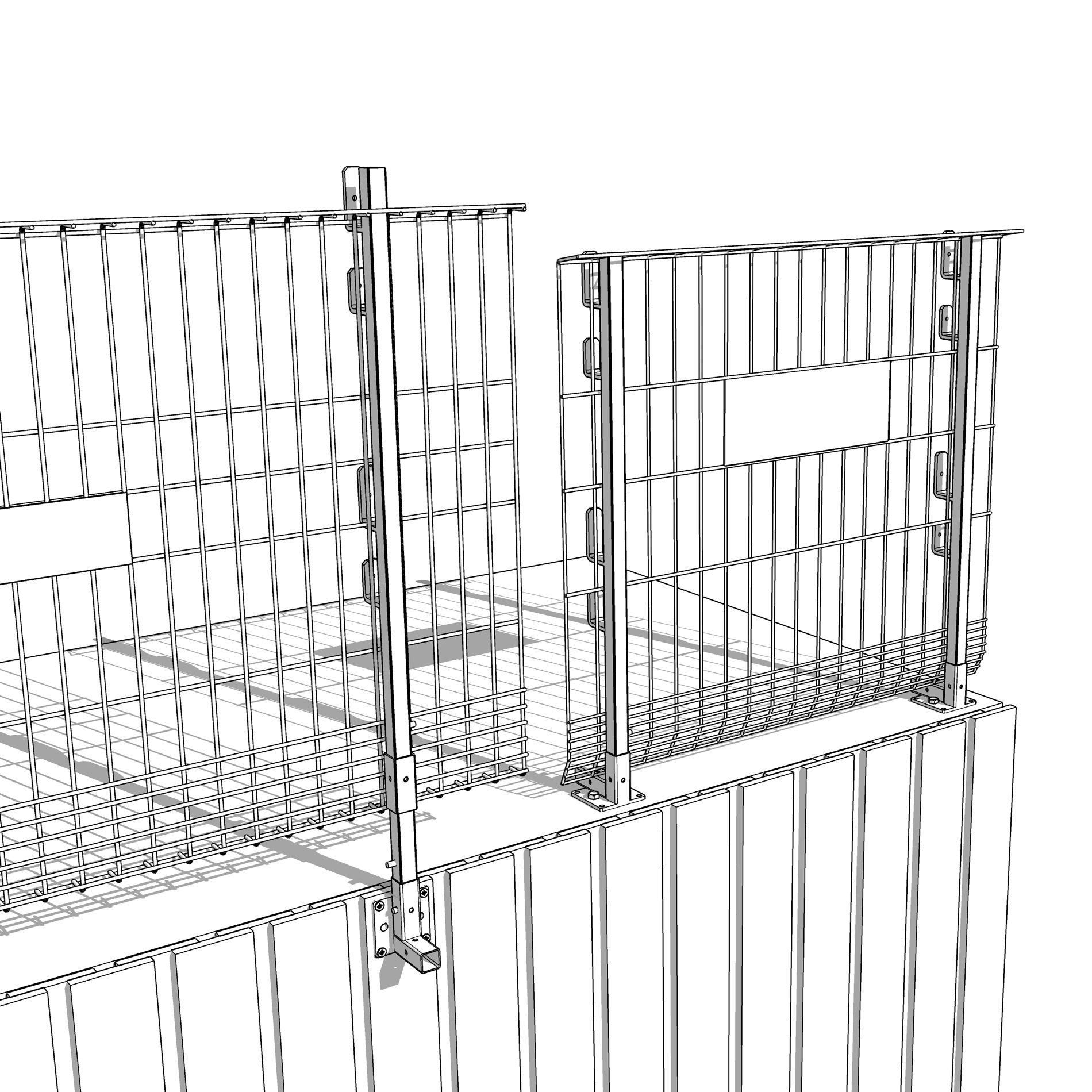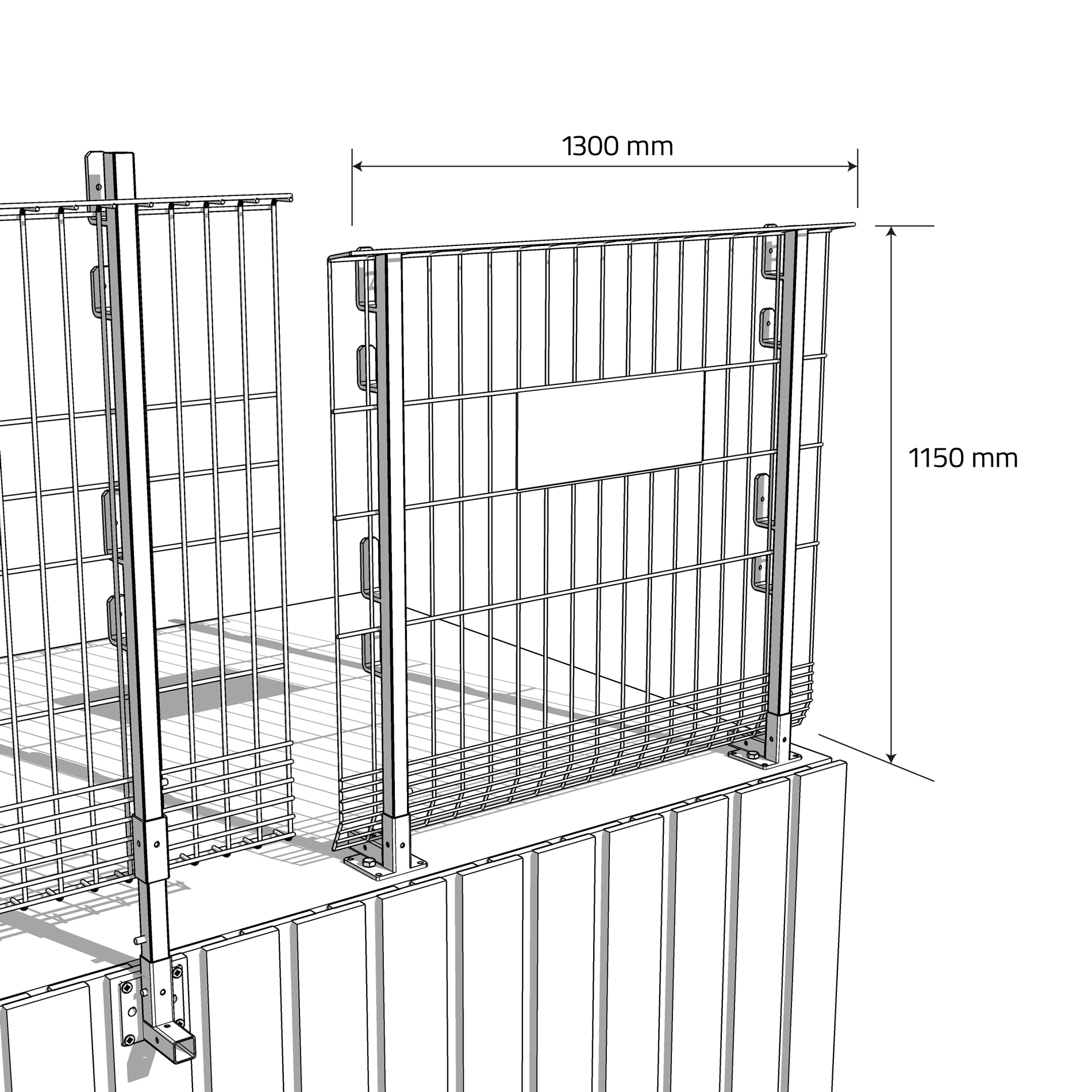 Alternativet til et rækværk med brædder. Hegnet, som har indbygget fodliste, er en komplet afskærmning, som hurtigt og fleksibelt monteres på stolperne. Hegnet er varmforzinket. Kan også købes pulverlakeret i kundens farve. Hegnet er 130 cm langt og kan monteres med en stolpeafstand på maks. 110 cm.