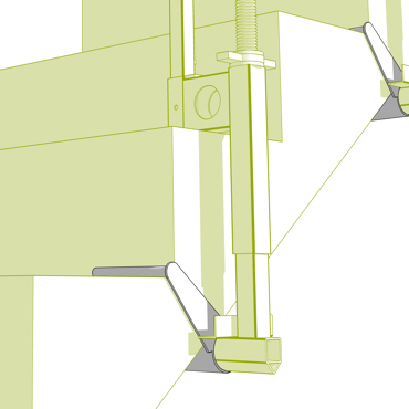 Bruges på lange forskallingsbeslag af ældre model, hvor den nederste støtteplade ikke kan finde støtte, så beslaget kæntrer, fx. i vindues- eller døråbninger.