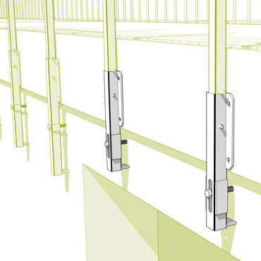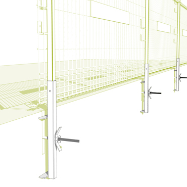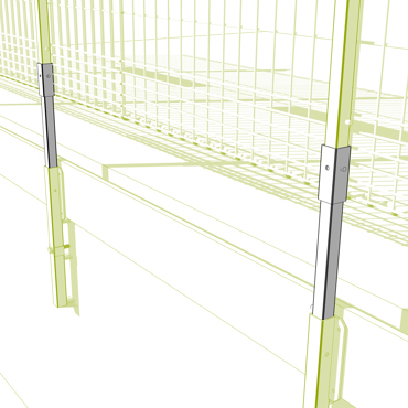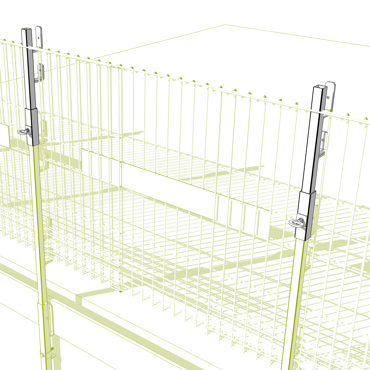 Stolpe 1500 er ny i PROTECTO-systemet og bruges sammen med Sikkerhedshegn 115 eller Sikkerhedshegn 70. Stolpen har en skyder, som gør det muligt at skyde hegnet opad, hvis der skal arbejdes ud over kanten.