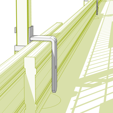 HT stolpebeslaget bruges til at fastgøre PROTECTO-stolpen på H20 trædragere. Samtidig kan den støtte en kantbegrænsning ved dækstøbning.