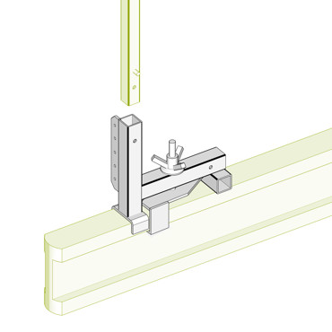 Med trappevinklen og MZ-tvinge kan man montere lodrette SK-stolper på siden af et trappeløb, så rækværkshøjden bliver korrekt ifølge normen. Fastgørelsen sker uden bolte.
