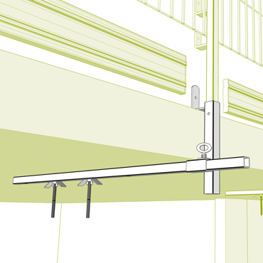 Udkragningsbeslaget er et flexbeslag i PROTECTO systemet beregnet til brug på undersiden af udkragninger af f.eks. beton eller træ.