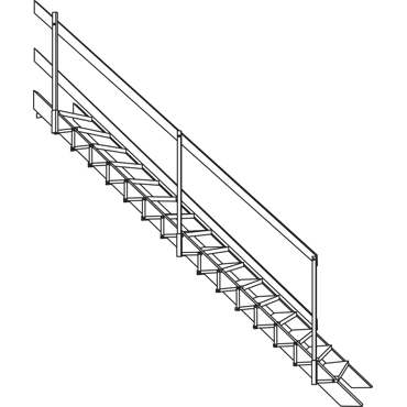 Byggepladstrappen har skridsikre trin, så den kan bruges sikkert i al slags vejr. Trappens hældning er 45 grader, hvilket gør det let at gå på den med materialer og værktøj.