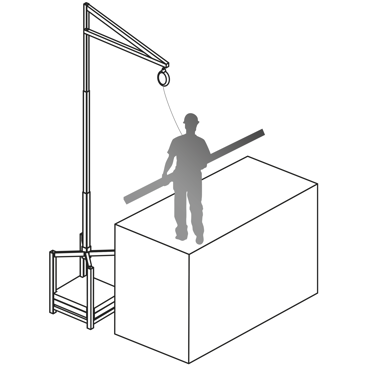 Faldsikringsbommen er designet til sikkert at forhindre fald fra højden under lastning / losning af dækelementer fra ladvogn / trailer. Faldsikringsbommens svingbare udhæng (4,7 m eller 5,9 m over jorden) er fastgørelsespunkt for en udtrækkelig faldblok, der er fastgjort til personens faldsele.