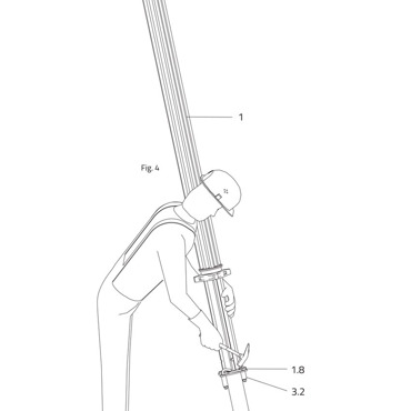 2. Fodens centrertappe 3.3 griber ind i hullerne på støttens fodplade 1.8 respektive topplade 1.9. Fig. 3