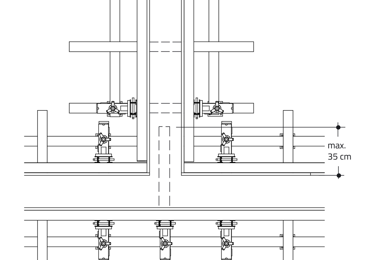 Det skal blot sikres, at strødrageren ikke går længere end 35 cm ind under den tværgående bjælkeforskalling.